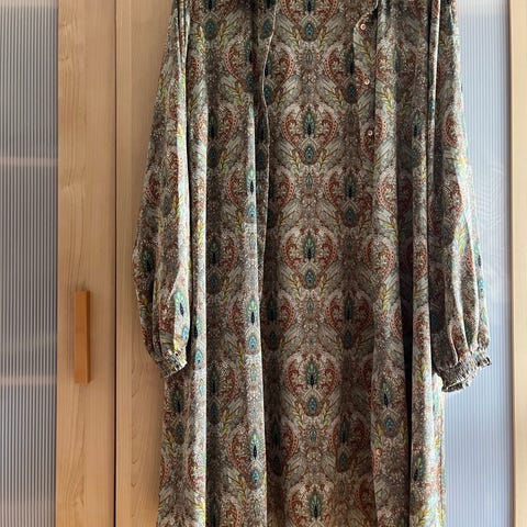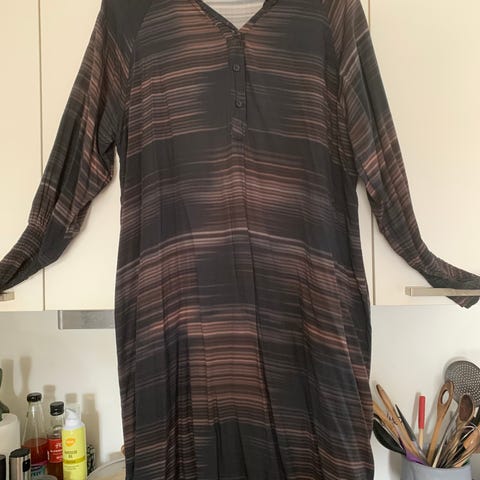 Kan knappes op ved ærmer. Made in India. Bomuld. Måler ca 57 cm fra ærmegab til ærmegab og ca 83 cm fra skulder og ned