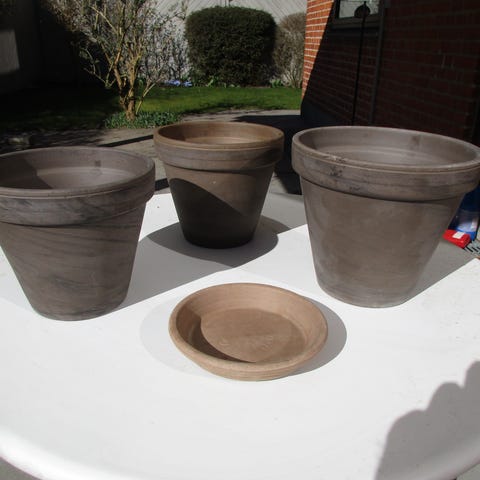 Samling af havekrukker og urtepotter i forskellige størrelser. Blandede lerpotter i klassisk terracottafarve samt spande og beholdere i metal. Velegnet til udendørs beplantning, omplantning af mindre planter og krydderurter eller som dekorative elementer i haven eller på terrassen.