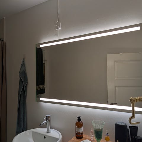 Designerlampe med rigtigt godt og behageligt lys. Vibia 8093 Millennium, designet af Ramos & Bassels. Chrome med LED. Til vægmontering over spejl.