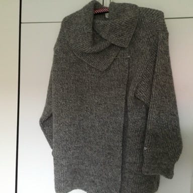 Grå sweater til kvinder i one size. Sweateren har et løst, poncholignende snit og et diskret mønster i strikken. Passer som overdel til hverdagsbrug og kan bæres over top eller bluse for ekstra varme.