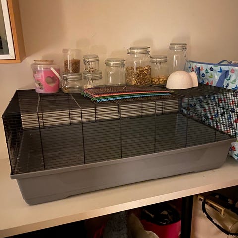 Sælger dette flotte og rummelige hamsterbur, som giver masser af plads til at grave gange, udforske og lege - præcis som hamstere elsker.