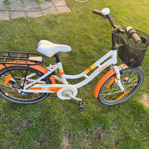 Winther børnecykel med 20" hjul. Cyklen har lige styr, fodbremse og håndbremse (bagbremse skal justeres) støtteben samt skærm foran. Kan cykles på, men for fuld funktionalitet skal der forventes service hvorfor prisen. Ekstra slange medfølger.