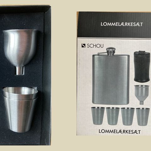 Speciel model med Stor og lille flaske med tragt og 2 rustfrit stål glas