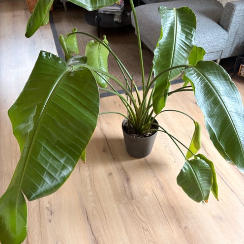Stueplante i potte med grønne, aflange blade. Planten står i en indendørs krukke og egner sig som dekorativ plante i stue, kontor eller andre opholdsrum. Krukken medfølger, som vist på billederne. Velegnet til placering ved naturligt lys, fx nær et vindue.