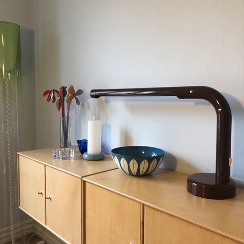 Højde 57 cm og skærmen er 46 cm. Foden 30 cm.