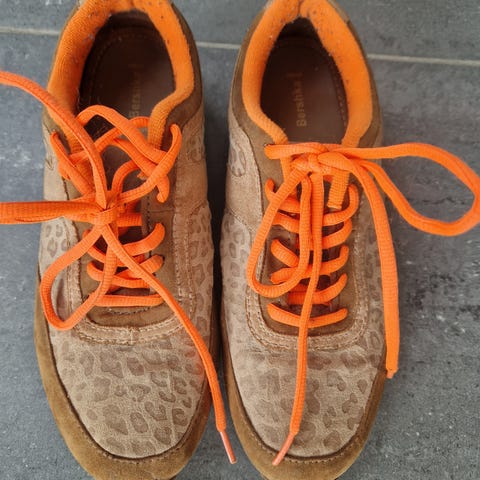 Skoene er kun brugt få gange og fremstår i rigtig god stand. De er almindelige i størrelsen og sidder behageligt på foden.