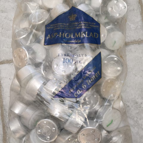 Har ca. 35 kasser á 10 pakker (á 10 lys) = ca. 3500 stk.