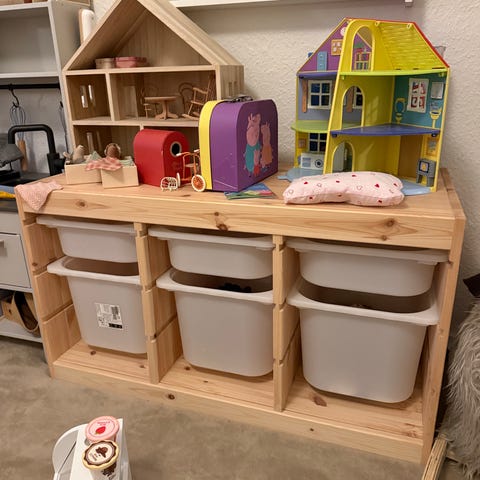 IKEA opbevaringsreol med plastkasser til børn