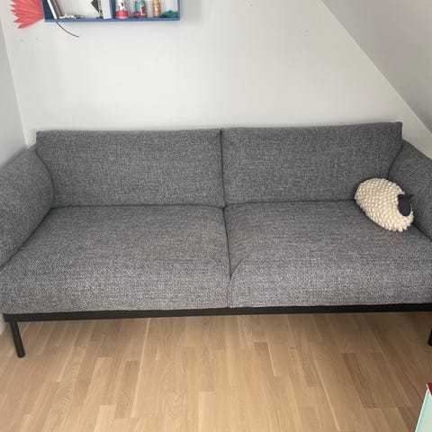 Grå modulsofa fra IKEA. Mærket er Vallentuna. Sofaen kan bygges sammen af modulerne og ryglænene kan flyttes. Det ene modul kan bruges som en puf, med opbevaringsplads indeni. De to andre moduler kan bruges som sofa og slåes ud til en enkelt-seng eller en dobbeltseng. Nemt at skille ad og flytte rundt på. Ryglænene og armlænene kan også tages helt af, hvis man hellere vil have to fritstående sovemoduler. Lys grå farve. Ingen synlige skader eller fejl.