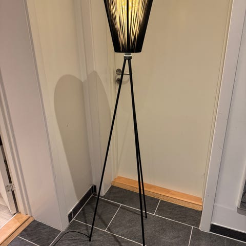 Flot og stilren Northern Oslo Wood gulvlampe, kendt for sit ikoniske design med tripod-ben og den smukke koniske skærm, der giver et varmt og behageligt lys.