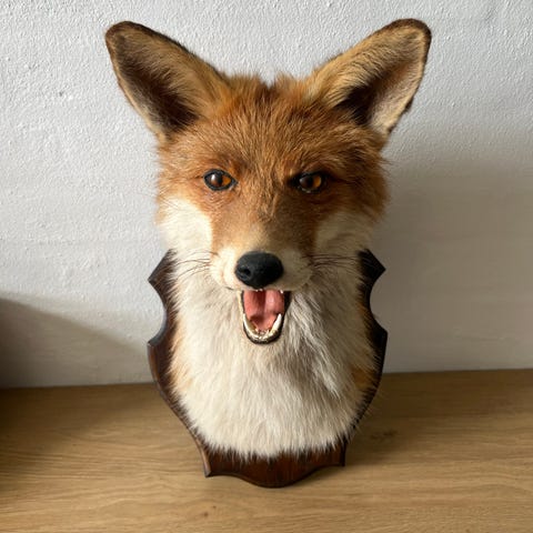 Udstoppet fugl som dekorationsgenstand monteret på træfod.