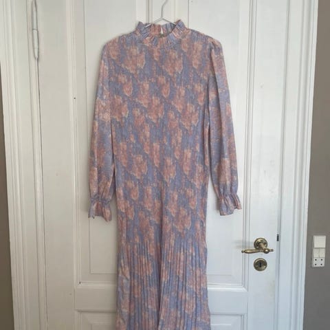 Lovechild hverdagskjole i str. 38. Kjolen er fremstillet i 100 % viskose og har et multifarvet blomstermønster. Modellen har lange ærmer og midi-længde. Velegnet som hverdagskjole og til sommerfest