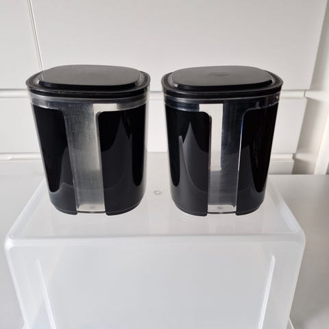 Komplet sæt af Tupperwares opbevaring til kartofler, løg og hvidløg - i farven sort.