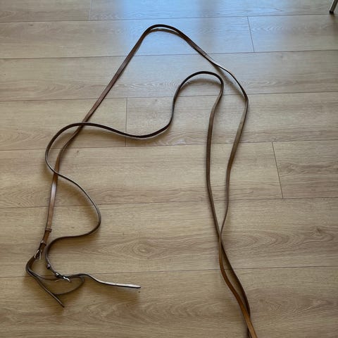 Velholdte køreliner som ny i ægte læder. Længde 4,7 m Brede 25 mm