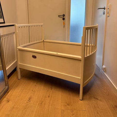 Sælger denne vidunderlige retro Hevaliseng designet af Bent W. Jeppesen i 1960'erne. Den kan både fungere som tremmeseng og juniorseng. Den har aldersrelateret patina, men sengen står dejligt stabilt, og udtrækket fungerer upåklageligt!