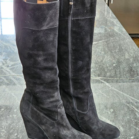 Elegante knæhøje støvler fra Ralph Lauren i sort ruskind (model Corrine).