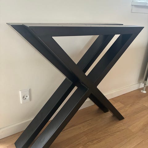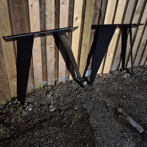 Special lavet af smed. Kan bruges til plankebord eller almindelig spisebord og der kan være god afstand mellem benene så de kan bruges til både kort og langt bordplade op til 220 cm ca.