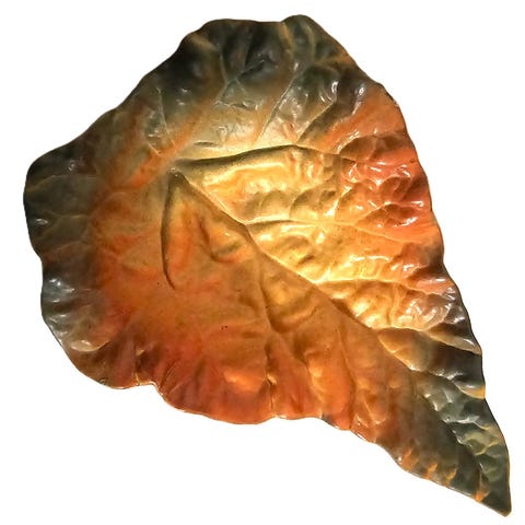 Keramisk bladformet i grønne nuancer. Motivet forestiller et blad med to snegle i relief. Materialet fremstår som glaseret keramik med detaljeret struktur i overfladen.