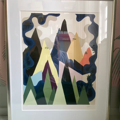 Litografi af Rasmus Eckhardt. Signeret R Eckhardt og nummereret 56/120. Trykt på 250 g BKF Rives syrefrit bomuldspapir. I akvarieramme af røget eg med museumsglas. Mål i ramme 62 x 85 cm.