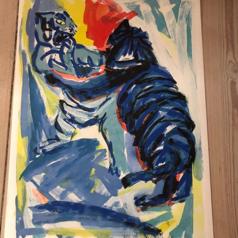 Kunst plakat, Uffe Christoffersen, motiv: Tigergab, b: 60 h: 70, Ny og ubrugt i paprør plakaten er fra år 2004.