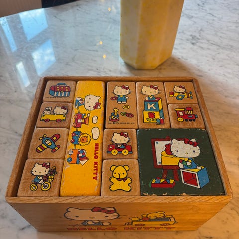 Vintage Hello Kitty træklodser sæt i trækasse (sario 1976)