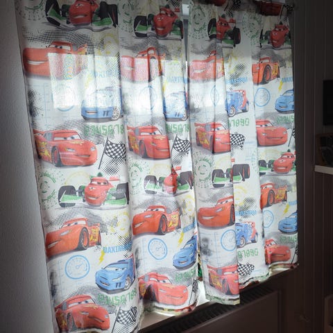 Som de hænger på billede nr. 1, er gardinstangen ca. 210 cm lang.