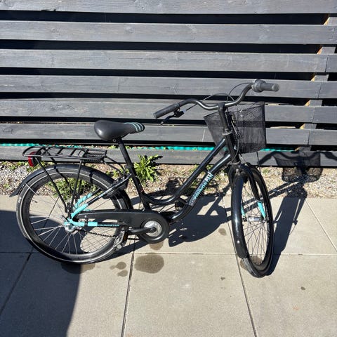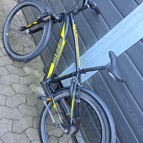 Fornuftig drengecykel med 24" hjul og 21 gear. Mekanisk er den helt i orden (alt virker), hvorimod den har lidt småskrammer og brugsspor. Udstyret med skivebremser, skærme, godkendt lås og gode dæk. Passer til 8-10 årige.