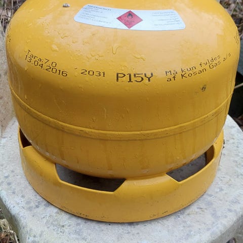 Gasflaskenøgle i plast, farve orange. Nøglen er beregnet til at spænde og løsne ventiler på gasflasker. Velegnet til brug ved tilslutning og afmontering af gasflasker i f.eks. campingvogne, grill eller andre gasinstallationer, hvor der kræves et værktøj til håndtering af flaskens ventil.
