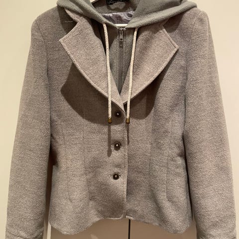 Jakke, str. 38, Lipo Lipo, sort, 70% uld og 30% polyester, Ubrugt, Sort jakke - ryg og ærmer af strik, mens der forrest er uld er stof i front og krave.