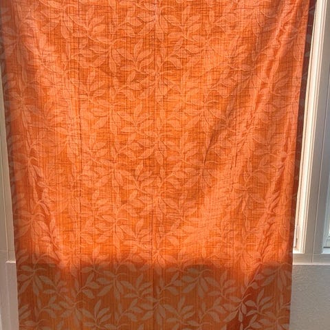 Curtain with straps for hanging on a curtain rod. The curtain has a striped pattern (1 no.) and solid pattern (2 nos.) Suitable as a window curtain in the home.