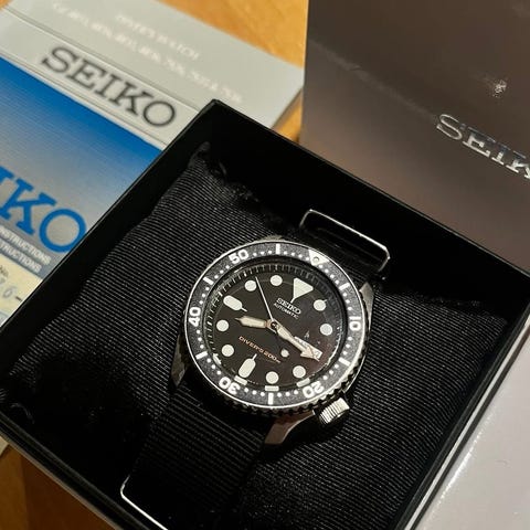 Seiko 5 Sports Pink Panther Limited Edition ur. Uret har en lyserød urskive med Pink Panther-tema detaljer og en sort lynette. Urkassen og lænken er i rustfrit stål. Uret er automatisk.