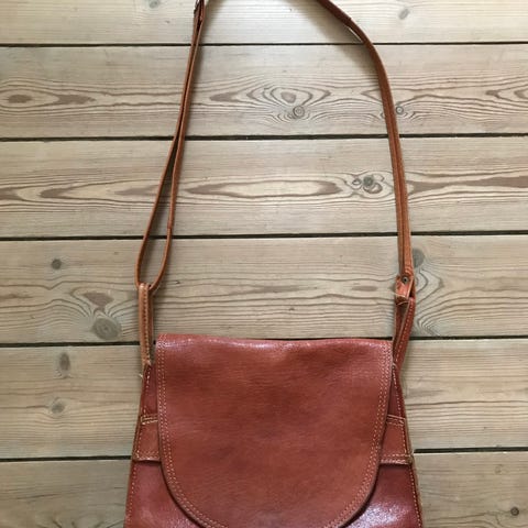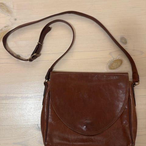 Crossbody, Adax, Skuldertaske / crossover, brunt læder, god kvalitet. Med 3 rum, højde 17 cm, bredde 16 cm.