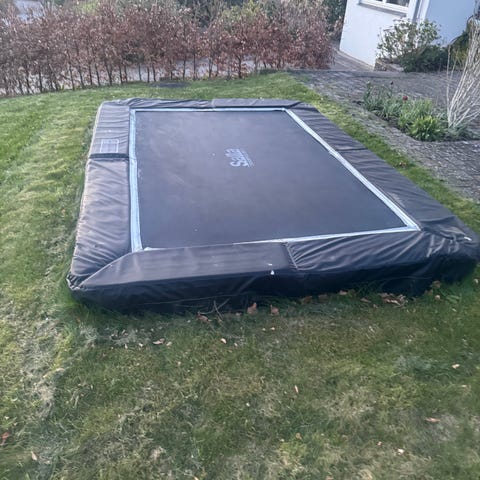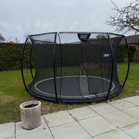 Stor Salta trampolin rund model med sikkerhedsnet og tilhørende stige.