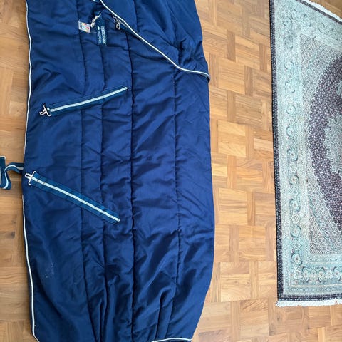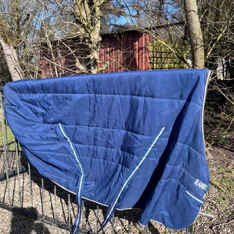 Stald dækken i størrelse 145 cm. Dækkenet er quiltet og egnet til brug i stalden. Farven er blå. Velegnet til hest med dækkenlængde 145 cm