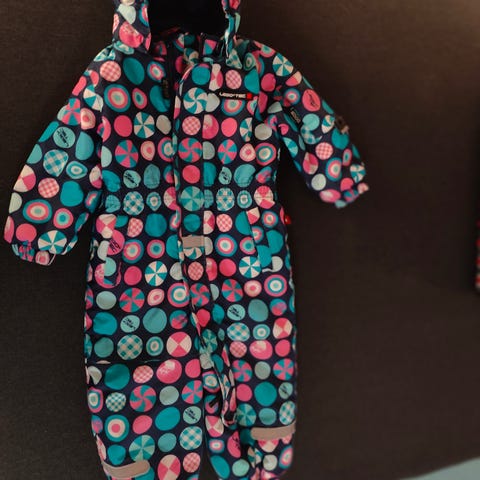 Elastikkanterne i ærme- og benåbningerne holder vind, vand og sne ude, samtidig med at kropsvarmen holdes inde. På siden af benene er der refleksbånd, og flyverdragten har også ikoniske refleksbadges på front og bag for bedre synlighed i mørket.