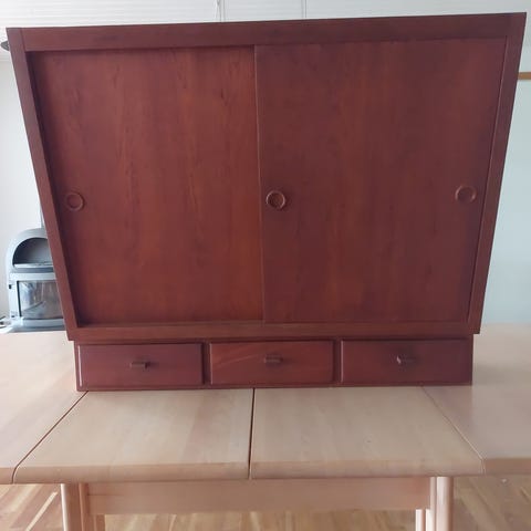 Skab fra et køkken fra 1960’erne. Skabet har siddet højt - derfor øverste plade ser ud som på billedet.