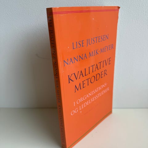 ”Kvalitative metoder i organisations- og ledelsesstudier”, Lise Justesen og Nanna Mik-Meyer. Hæftet indbinding, 1. udgave, 3. oplag. Udgivet i 2010 af Hans Reitzels Forlag. 160 sider, illustreret.