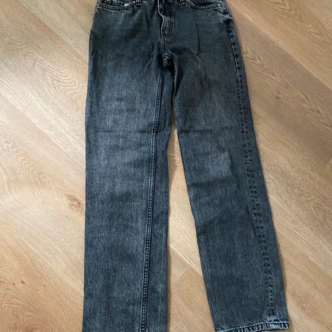 Jeans, Gina Tricot Perfect jeans , str. 28, Lyseblå, Bomuld , 1 % elastan , God men brugt, Med metal dutter på lommer bagpå, og i siderne, 2 forskellige mønstre men der mangler ikke nogen.