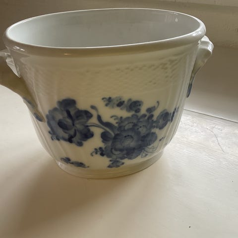 Sættet består af en bakke i Blå Blomst og to beholdere i Musselmalet. Delene sælges samlet, men kan efter aftale sælges enkeltvis for 300 kr. pr. del.