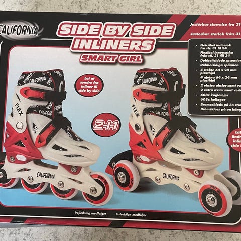 Sportsline rulleskøjter til børn i størrelse 32-35. Rulleskøjterne er i pink med sorte og grå detaljer og har justerbare spænder over fod og ankel for at give en fast pasform. Hjulene er placeret to forrest og to bagerst, hvilket giver ekstra stabilitet til begyndere men kan også laves til inliner.