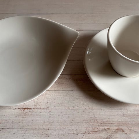 Fremstillet i hvid porcelæn, made in Germany. Neutralt, hvidt design der passer til mange typer borddækning.