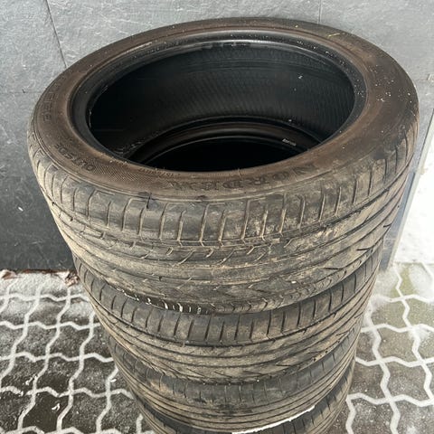 Brugte sommerdæk 17 tommer. De holder formentlig en sæson eller to til tre mere