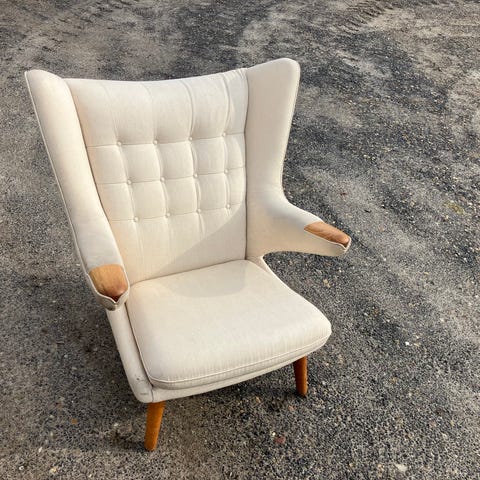 2 meget flotte Skipper Bamsestole med rødt uldbetræk af høj kvalitet.