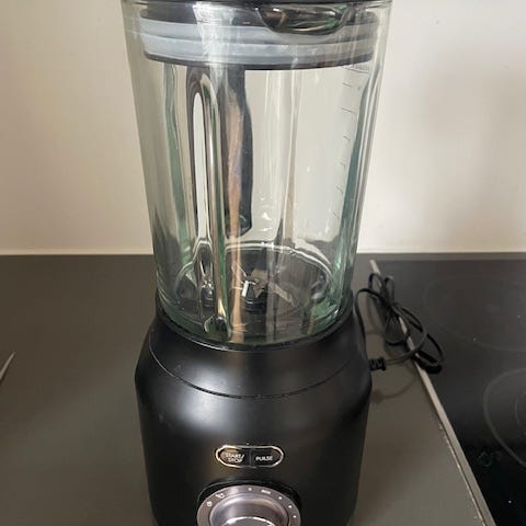 Witt blender med glasbeholder i klar glas og sort base. Virker helt som den skal :)