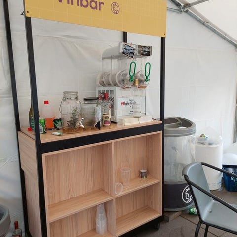 Kompakt bar med tilhørende barstole i læder. Bordet har bordplade i mørk finish og front i træ og messingkant. Der medfølger to italienske barstole med metalstel og polstret sæde i læder. Står som hjemmebar og bordpladen har jeg selv skåret. Fronterne er lavet af super fede brændte genbrugsplader fra en modebutik. Vin reolen på væggen er fra Vinbarto Odin model. Neonskiltet kostede cirka 700 kr. nyt. Samlet set har baren nok kostet mig 5000 kr. Jeg sælger det hele for 2500 kr. Unik mulighed for at få en fed komplet bar derhjemme når man har en gæst over. Jeg kan godt være med til at bære ned fra anden sal
