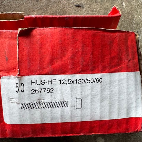 Jeg har knap 4 kasser af 50 stk af disse betonskruer i overskud. (Har også mange andre størrelser, bare ikke lige så mange)