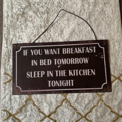 Skilt i metal med blå baggrund og lys tekst og motiv. Forsiden viser et piktogram af hænder under en vandhane samt teksten "Wash hands often". Skiltet har hængt på et skib. Der er huller til ophæng. Måler 8 x 15.