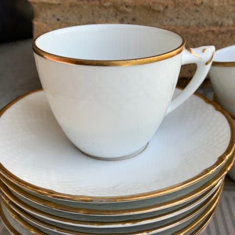 Bing & Grøndahl porcelæn kaffekopper med underkopper creme med guldkant