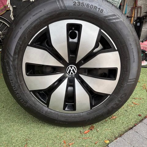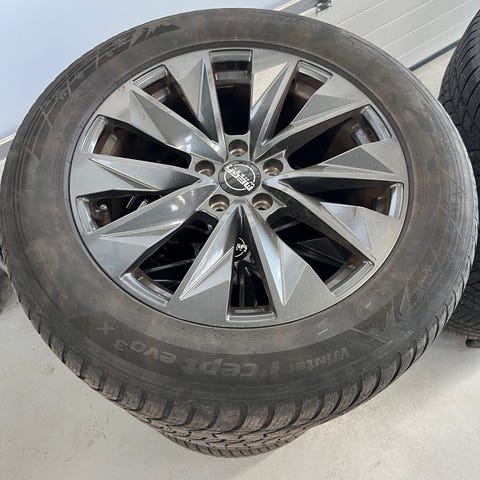 Monteret med Hankook W330A 235/60R18 og 265/60R18 Winter evo3 x kørt 2 sæsoner ca. 14.000 km. 5,5mm mønster tilbage. Så stadig mange km endnu. Ingen ridser på fælge. Bolte medfølger.