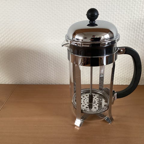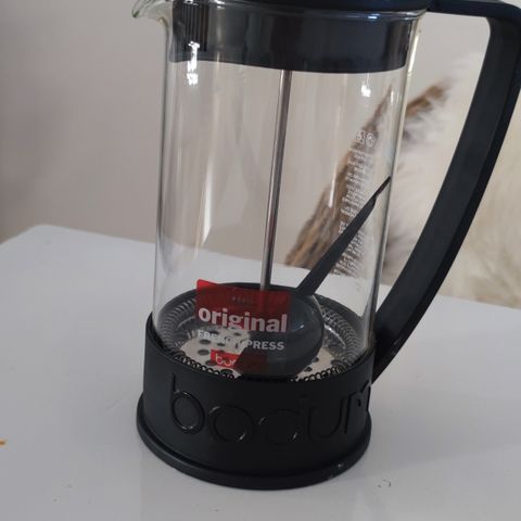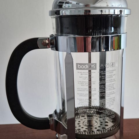 Bodum Brazil stempelkande i glas med sort plastlåg, hank og bund.